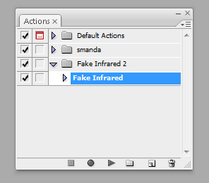 3. Buka Windows-Action, Jika anda memiliki Action lainnya silahkan Load, dalam contoh saya menggunakan Fake IR, Yang tidak punya silahkan ambil di Grup Belajar Photoshop