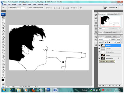 Sekarang mambuat rambut gan! Proses nya sama kok seperti di atas :D. Kita buat satu layer lagi dan beri nama “RAMBUT/BULU”.  Kalau sudah kita mulai ok. Dan pemberian warna sama seperti tutor di atas gan. Kalau belum biasa, bikin rambut nya setengah setengah dulu gan seperti di bawah