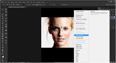 5. Agar mempermudah kita untuk ketahap selanjutnya kita cukup dengan “Copy Layer Style”caranya adalah klik kanan pada “Layer 2”kemudian pilih “Copy Layer Style”.