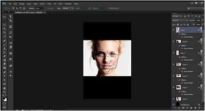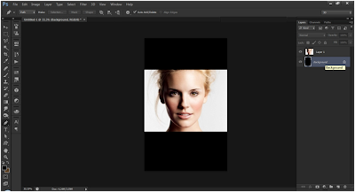 2. Buatlah sebuah dokument baru berukuran 960 x 1542 px berwarna hitam lalu tempelkan gambar yang akan kita olah.