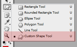 2. Bukalah Custom Shape Tool, ganti jenis bentuknya dengan cara klik kanan. untuk bentuknya bebas.
