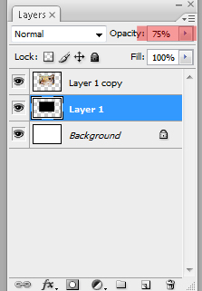 4. Duplikat kembali Layer 1 dengan menekan Ctrl+J, akan muncul Layer 1 Copy. setelah itu palih layer 1 dan tekan Ctrl, masih di layer 1 tekan Alt+backspace. maka hasilnya layer 1 menjadi hitam.