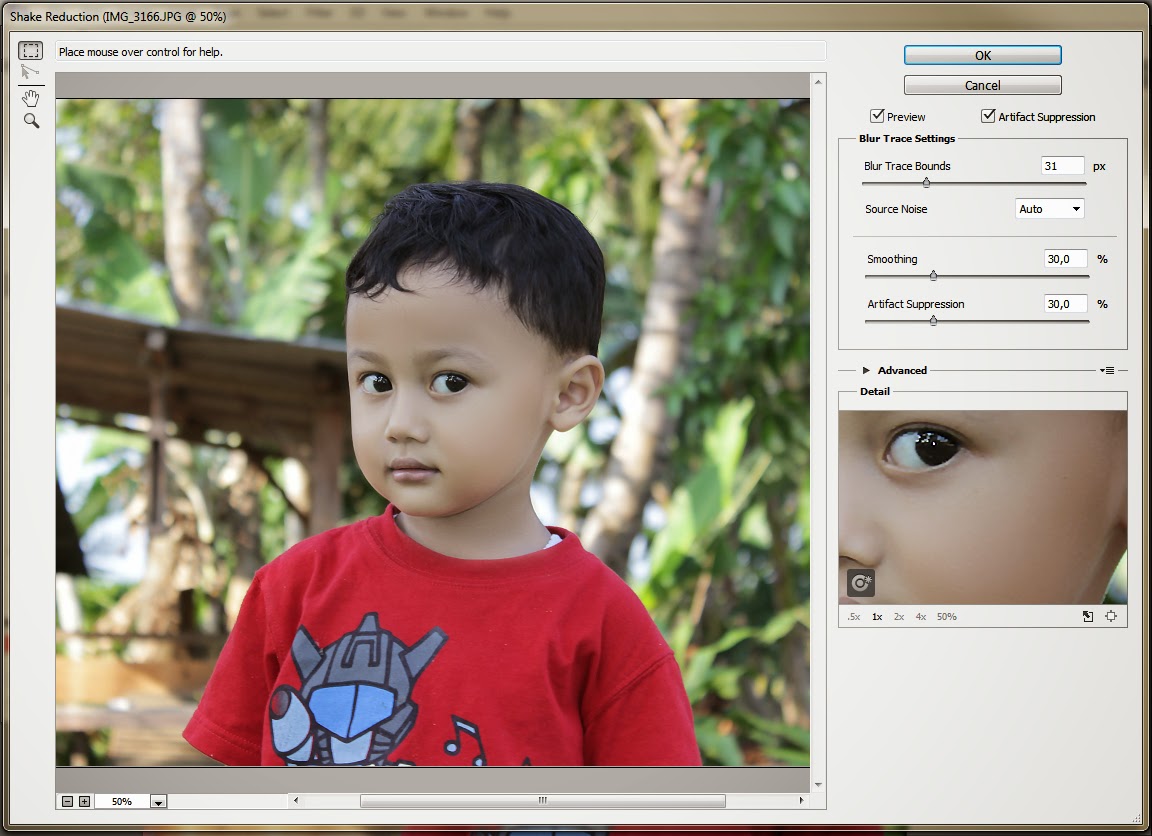 - Atur nilai Blur Trace Bound, Smoothing dan Artifact Suppression, Artifact Suppression sesuai keinginan.