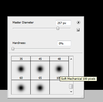 4. Tambahkan Layer baru, dan pilih brush tool lagi, sekarang ganti jenis nya menjadi brush petir.