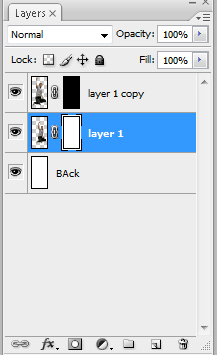 3. Buatlah masking pada tiap layer. Layer 1 dengan masking warna putih dan layer 1 copy dengan masking warna hitam, untuk membuat jadi hitam tekan Ctrl+I pada layer 1 copy. bagi yang tidak tahu masking buka latihan apa tiu masking?
