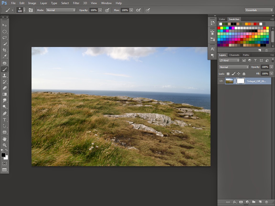 1. Buka Photoshop lalu open Stok yang pertama, disini saya mengambil stok foto Landscape di pantai, namun saya hanya akan mengambil bagian rerumputannya saja.