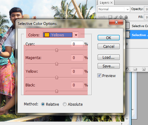 3. Pada Bar selective terdapat pilihan Color, CMYK, Method. atur sesusai dengan yang anda inginkan