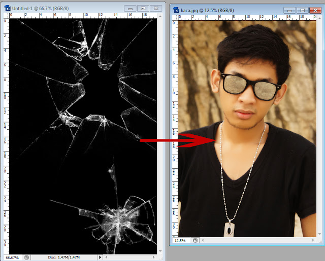 2. Siapkan photo, tarik/drag desain kaca pecah ke dalam layer photo