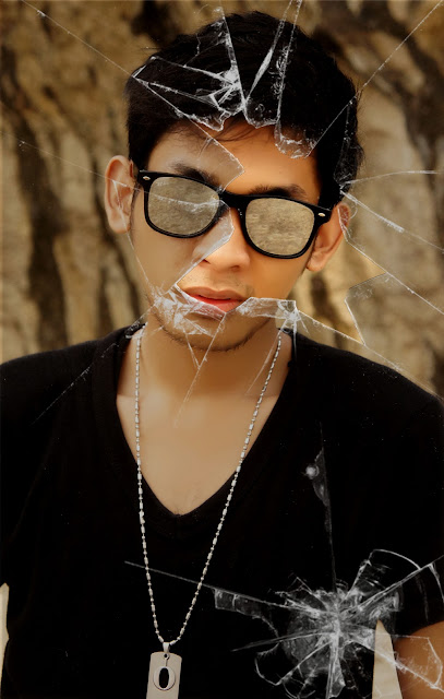 1. Buatlah desain kaca pecah menggunakan Brush, download di Fan Page Belajar Photoshop.