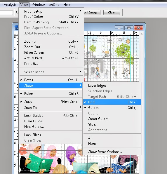 Cara menggunakan grid pada photoshop sebegai berikut.