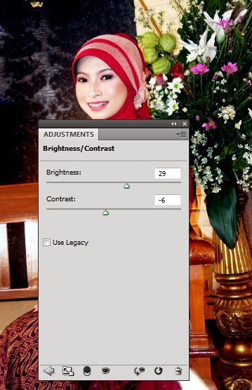 Fungsi dari Brightness/contrast adalah untuk mengatur terang dan gelapnya warna.