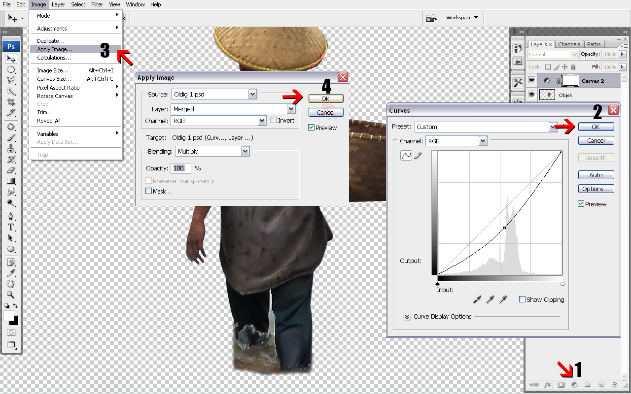 Lalu pilih Image>>Apply Image pilih Invert seperti terlihat pada gambar lalu OK